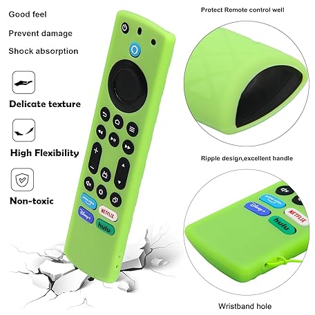 PINOWU Silicone Remote Case (3pcs, Glow in The Dark) for Fire TV Stick 4K Max/Insignia/Pioneer/Omni (QLED) Series Alexa Voice Remote Enhanced w/Lanyard (Green+ Turquoise+ Pink)