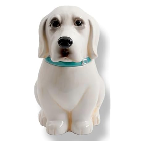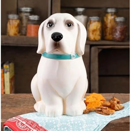 Pioneer Woman Lucy Ceramic Dog Cookie Jar with Lid, White Labrador-Style Treat Container for Kitchen Countertop, 11” Tall