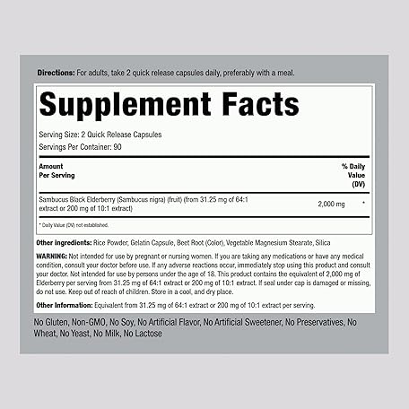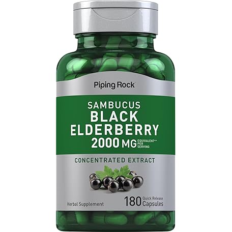 Sản phẩm Piping Rock Black Elderberry Capsules 2000mg | 180 Pills | Herbal Extract Supplement for Adults | Sambucus Nigra | Non-GMO, Gluten Free đang được bán với giá ưu đãi là $13.0691 tại nước Mỹ.