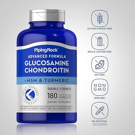 Sản phẩm Piping Rock Glucosamine Chondroitin MSM and Turmeric | 180 Capsules | Complex Supplement | Advanced Double Strength Formula | Non-GMO, Gluten Free đang được bán với giá ưu đãi là $19.6091 tại nước Mỹ.