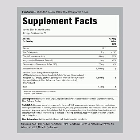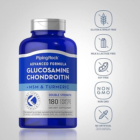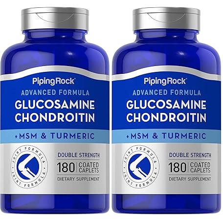 • Piping Rock Glucosamine Chondroitin MSM Plus Turmeric | 180 Caplets | Double Strength Formula | Advanced Complex Supplement | Non-GMO, Gluten Free (Pack of 2)