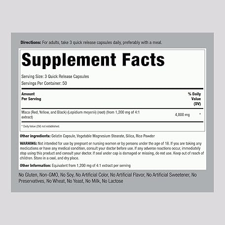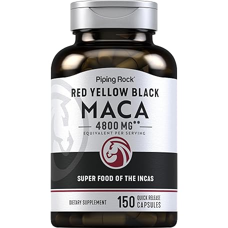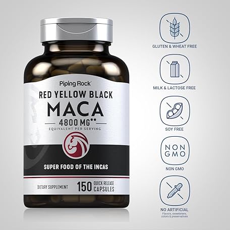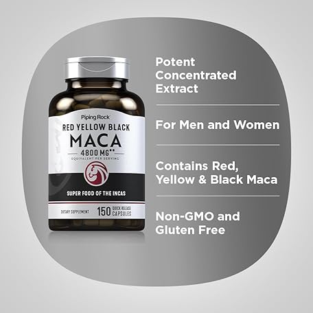 Thông tin sản phẩm Piping Rock Maca Root Capsules for Women and Men | 4800mg | 150 Powder Pills | Red, Yellow, and Black | Non-GMO, Gluten Free Supplement