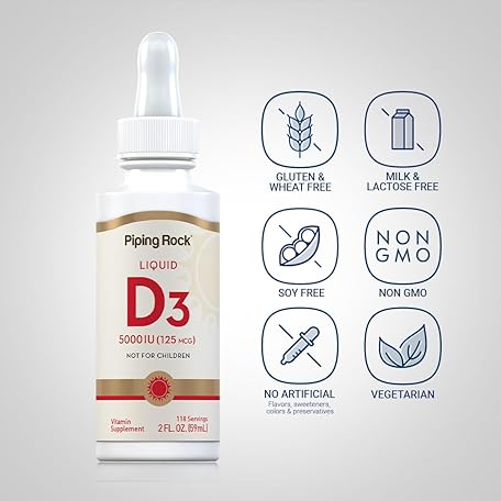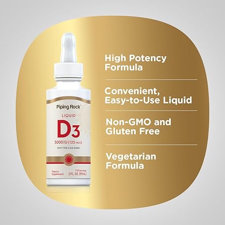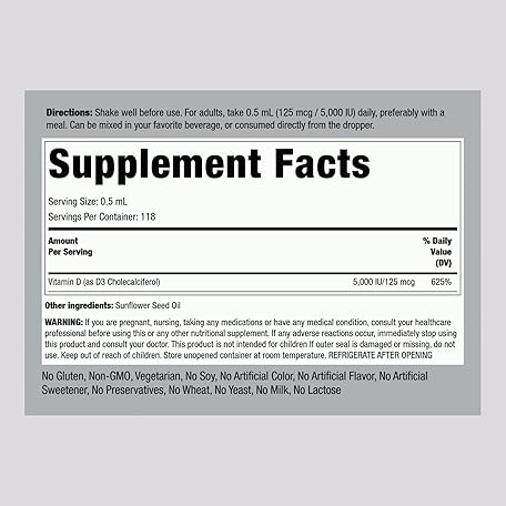Thông tin sản phẩm Piping Rock Vitamin D3 Liquid 5000 IU (125 mcg) | 2 oz | Vitamin D Drops for Adults | Vegetarian, Non-GMO, Gluten Free Supplement (Pack of 2)