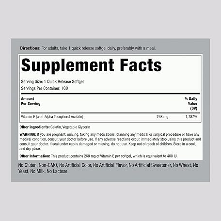 Sản phẩm Piping Rock Vitamin E 400 IU Softgels | 268mg | 100 Softgel Capsules | D-Alpha Tocopherol | Non-GMO, Gluten Free Supplement đang được bán với giá ưu đãi là $10.8891 tại nước Mỹ.