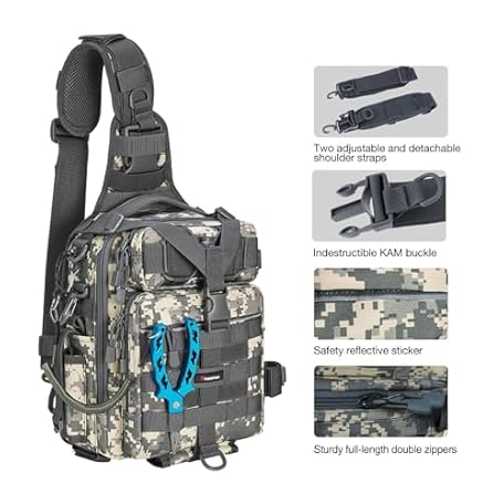 • Piscifun Fishing Backpack with Rod Holder, Lightweight Sling Bag Storge Gear and Equipment