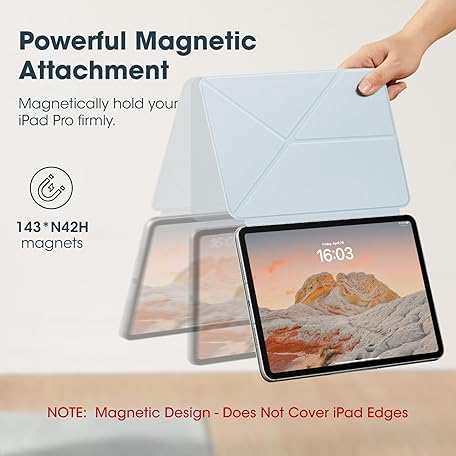 Thông tin sản phẩm pitaka for iPad Pro 11 Inch Case 2025/2024, Compatible with iPad Pro M5/M4, Portrait/Landscape Magnetic Case with Pencil Holder, 4 Standing Angles and - Light Blue