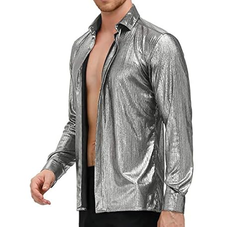 • PJ PAUL JONES Men's 70s Disco Shirts Luxury Metallic Sequins Button Down Long Sleeve Party Shirt Nightclub Costume Tops