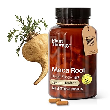 Plant Therapy Maca Root Capsules Manufactured in USA 4 Month Supply Supports Sexual Health, Mood Boosting, Energizing & Reduces Tension Supplements for Men & Women 120 Vegetarian Capsule