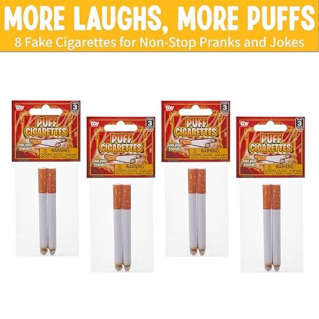 Sản phẩm Playbees Fake Puff Cigarettes That Blow Smoke - 8 Pack - 3.25 Inch Faux Cigs with a Realistic Look - Prop for Prank, Halloween Costume, Movie, or Theater Play - Fun Gag Gift, Novelty Toy đang được bán với giá ưu đãi là $9.7991 tại nước Mỹ.