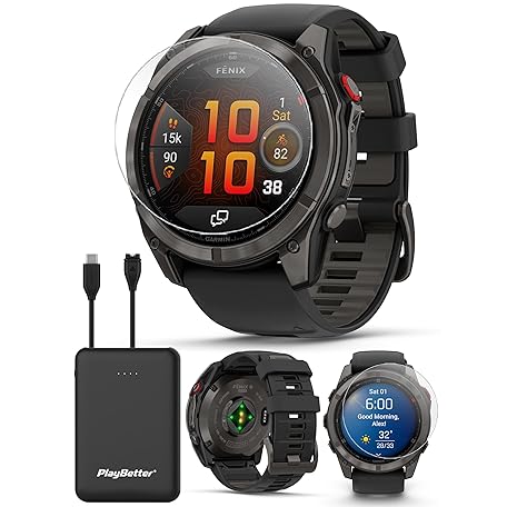 PlayBetter Garmin Fenix 8 Pro AMOLED Sapphire (51mm, Carbon Gray DLC Titanium) Multisport GPS Smartwatch Bundle - 1.4” Touchscreen, inReach Technology Portable Charger & Screen Protectors
