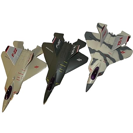 Playmaker Toys - F/A-22 Raptor United States Air Force Fighter Jet Set, 7-Inch, Light and Sound, 3-Set in classic camouflage grey, desert tan, and tactical stealth black