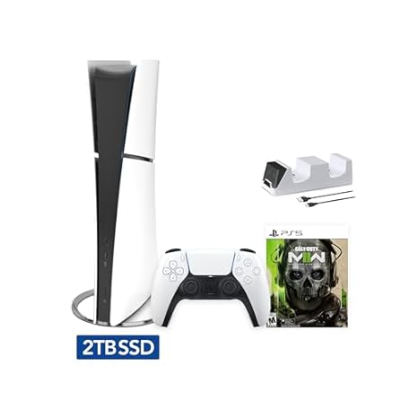 • PlayStation 5 Slim Upgraded 2TB Digital Edition Call of Duty Modern Warfare II Bundle and Controller Charger - White, Slim PS5 2TB PCIe SSD Gaming Console with Upgraded 2TB Ultra Fast SSD, Haptic Feedback Controller [video game] [video game] [video game] [