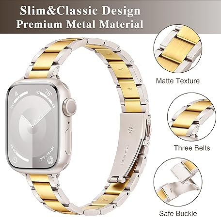 Sản phẩm Pleixiu Slim Designer Stainless Steel Band Compatible with Apple Watch Bands for Women Men 38mm 40mm 41mm 42mm 44mm 45mm 46mm 49mm, Dressy Wristband for iWatch Series 11 10 9 SE 8 7 6 5 4 3 2 1 đang được bán với giá ưu đãi là $18.3992 tại nước Mỹ.