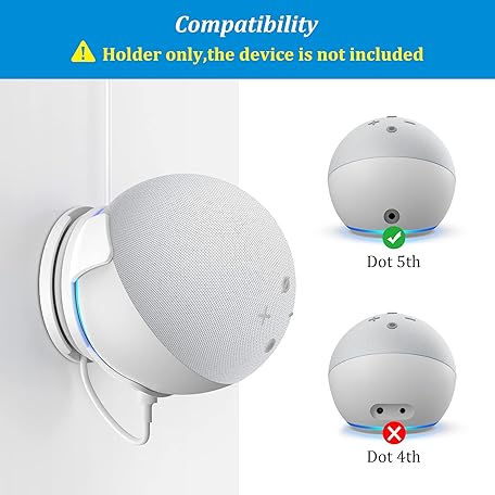 Thông tin sản phẩm PlusAcc Wall Mount for Echo Dot 5th Generation - Wall Holder Stand Hanger for Echo Dot 5 Gen, Space-Saving Alexa Dot 5th Accessories, Built-in Cable Management (White-1 Pack)