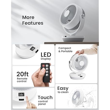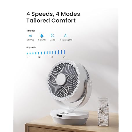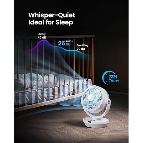Thông tin sản phẩm PNTCK Air Circulator Fan for Bedroom, 13" Table Fan with Remote, 90° Oscillating & 120° Tilt, 60ft Strong Airflow, Quiet 25dB Electric Fan with 4 Speeds, 4 Modes & 12H Timer