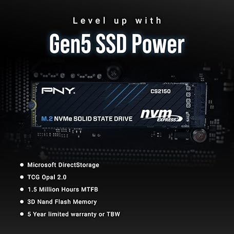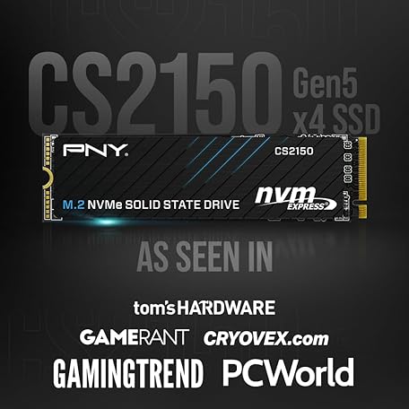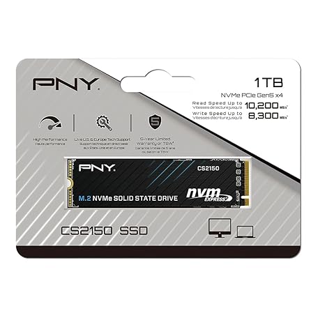 Thông tin sản phẩm PNY CS2150 1TB Gen5 PCIe NVMe M.2 2280 3D NAND SSD – Up to 10,200/8,300 MBs - PC/Laptop Upgrade, Gaming, Photography, Video Editing, Direct Storage Enabled-Internal Solid-State Drive M280CS2150-1TB-TB