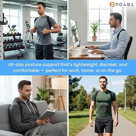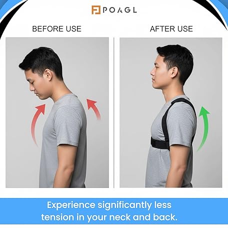 Thông tin sản phẩm POAGL Adjustable Posture Corrector Brace for Men – Universal Fit Upper Back, Shoulder & Clavicle Support, Helps Improve Posture & Relieve Neck, Shoulder & Back Pain (Patented Design)