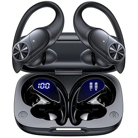 Sản phẩm PocBuds Bluetooth Headphones Wireless Earbuds 80hrs Playtime Wireless Charging Case Digital Display Sports Ear Buds with Earhook Deep Bass IPX7 Waterproof Over-Ear Earphones for TV Phone Laptop Black đang được bán với giá ưu đãi là $26.8794 tại nước Mỹ.