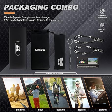 Thương hiệu AWGSEE là cái tên nổi tiếng được rất nhiều khách hàng trên thế giới chọn lựa. Với kiểu dáng đẹp mắt, sang trọng, sản phẩm Polarized Sports Sunglasses for Men 100% UV Protection Wrap Around Unbreakable Sun Glasses for Fishing Driving là sự lựa chọn hoàn hảo nếu bạn đang tìm mua một món cho riêng mình.