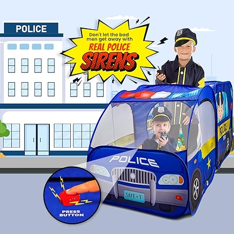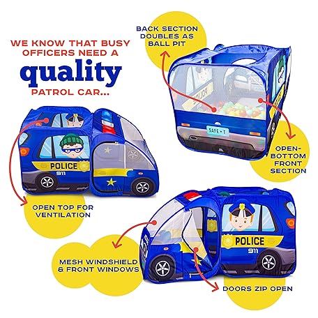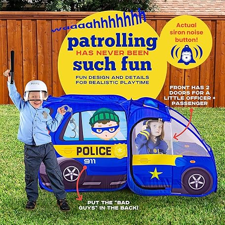 Sản phẩm Police Car Pop Up Play Tent with Sound Button for Kids, Toddlers, Boys, Girls, Indoors & Outdoors – Playhouse for Interactive Fun - Foldable, Quick Setup Pretend Play Toys & Gift đang được bán với giá ưu đãi là $35.9155 tại nước Mỹ.