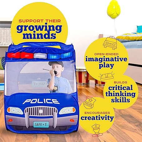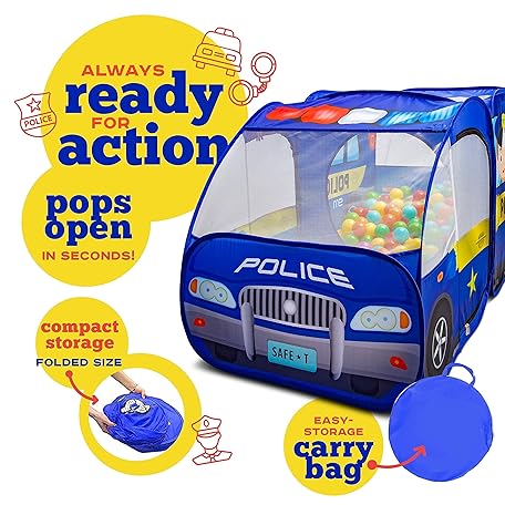 Thông tin sản phẩm Police Car Pop Up Play Tent with Sound Button for Kids, Toddlers, Boys, Girls, Indoors & Outdoors – Playhouse for Interactive Fun - Foldable, Quick Setup Pretend Play Toys & Gift