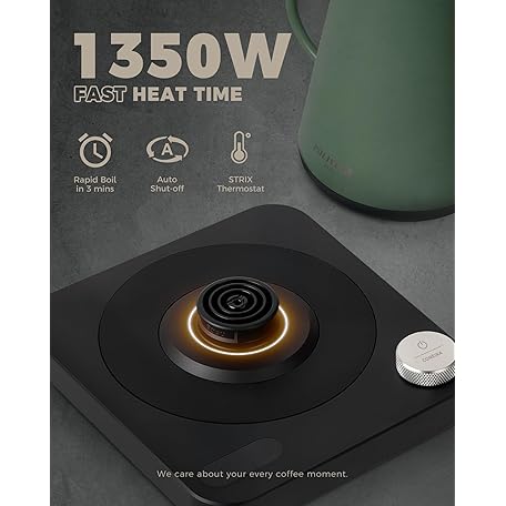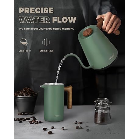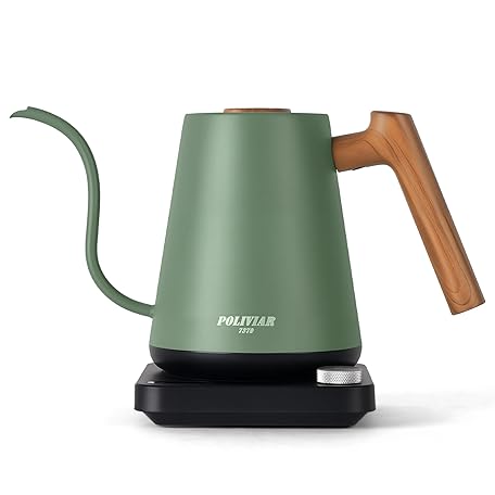 POLIVIAR Electric Gooseneck Kettle, 1350W Electric Tea Kettle Wood Pattern Handle, 34oz Pour Over Electric Kettle for Coffee & Tea, 18/8 Stainless Steel Inner, Temperature Control & Rapid Heating
