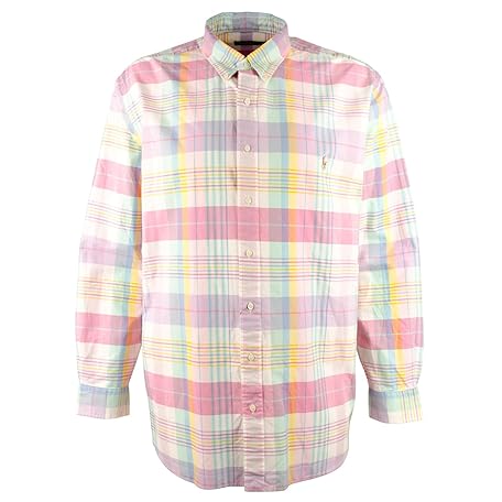 POLO RALPH LAUREN Men's Big & Tall Long Sleeve Plaid Classic Oxford Shirt PnkGrn 4XLT Pink/Green