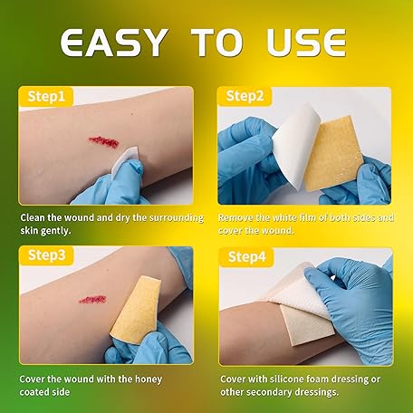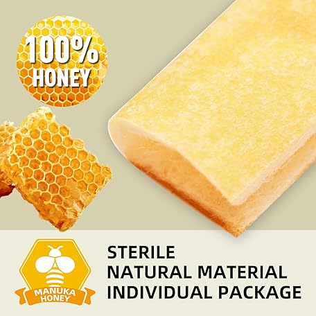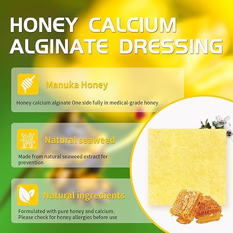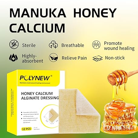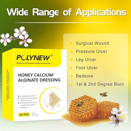 Thông tin sản phẩm Polynew Manuka Honey Calcium Alginate Dressing, 12 Individual Pack, 2"x2" Patches, Wound Dressing with Calcium Alginate, Bandages for Burns, Faster Wound Care