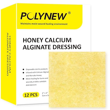 Sản phẩm Polynew Manuka Honey Calcium Alginate Dressing, 12 Individual Pack, 2"x2" Patches, Wound Dressing with Calcium Alginate, Bandages for Burns, Faster Wound Care đang được bán với giá ưu đãi là $29.2992 tại nước Mỹ.