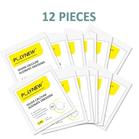 Sản phẩm Polynew Silver Calcium Alginate Dressing, 4"x4"-12 Individual Pack, Highly Absorbent Ag Alginate Wound Bandage, Non-Adhesive Wound Dressing for Bed Sore, Pressure Sore, Leg Ulcer Wound Health đang được bán với giá ưu đãi là $27.2391 tại nước Mỹ.