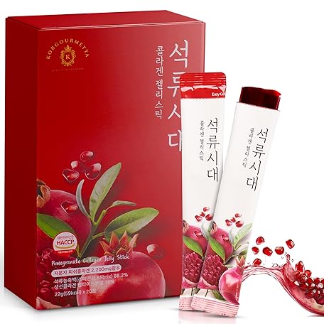 | Pomegranate Collagen Stick – 20 Sticks, 0.77oz(22g) | Korean Fruit Extract, Daily Beauty Supplement, No Sugar Added, Portable On-The-Go Sticks | 석류 콜라겐 스틱