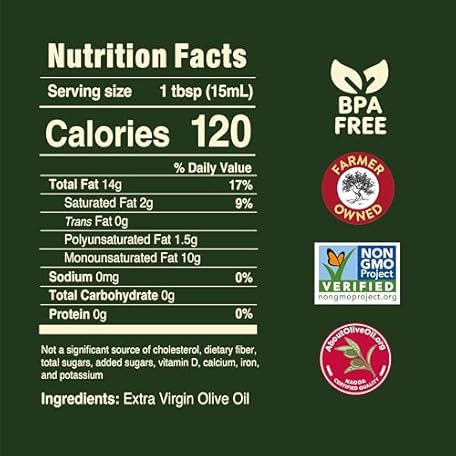 Mặt hàng này hiện nay đang có các phân loại Organic Robust Extra Virgin Olive Oil, Robust Extra Virgin Olive Oil, 16 Fl Oz (Pack of 1), 24 Fl Oz (Pack of 1), 32 Fl Oz (Pack of 1), 48 Fl Oz (Pack of 1), 68 Fl Oz (Pack of 1), 101 Fl Oz (Pack of 1), cho bạn nhiều sự lựa chọn phù hợp với cá tính và sở thích riêng của mình. Dự kiến hàng sẽ về đến Việt Nam từ 01-01-1970 đến 01-01-1970 nếu quý khách thực hiện thanh toán trong hôm nay.