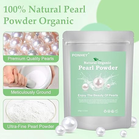 Ponhey Freshwater Pearl Powder Organic, 100% Natural Pearl Powder - Deep Cleansing, Pore-Shrinking, Anti-Aging Mask 100g (3.53oz)
