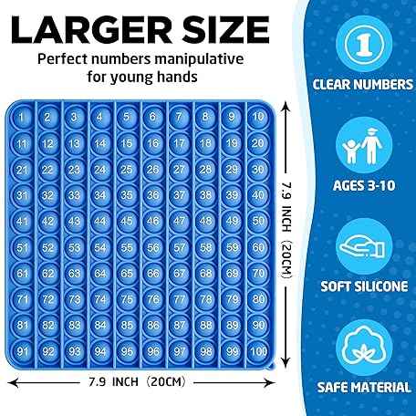 Pop it Numbers 100 Sensory Math Manipulative (Blue) Large Educational Consecutive Number pop it. Autism/ADHD Friendly Classroom Supply is Perfect for Home or Any Elementary Classroom