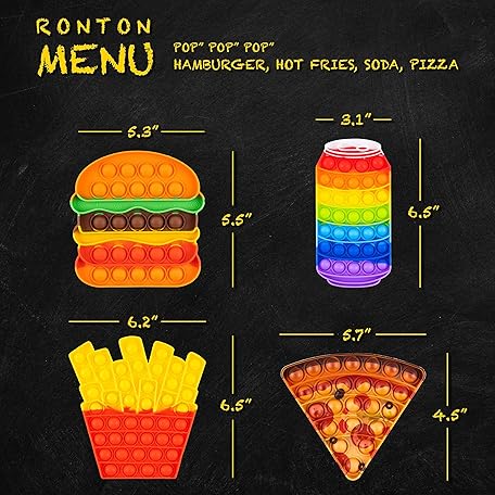 Thương hiệu Ronton là cái tên nổi tiếng được rất nhiều khách hàng trên thế giới chọn lựa. Với kiểu dáng đẹp mắt, sang trọng, sản phẩm Pop Its Fidget Toys Pack 4 - Stress Relief Food Pop Its Poppers Fidget Poppet Toy - Autism Learning French Fry Pizza Hamburger Popits Push Pop Bubble Popping Sensory Toy for Kids là sự lựa chọn hoàn hảo nếu bạn đang tìm mua một món cho riêng mình.