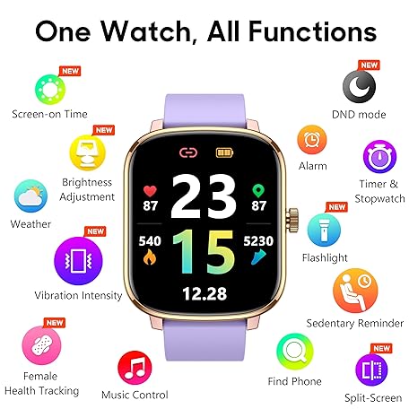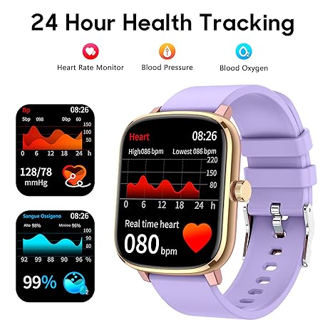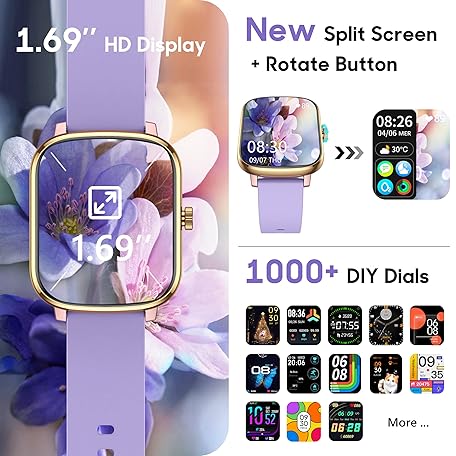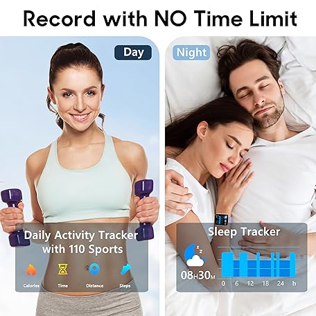 Popglory Smart Watch, 1.69'' Fitness Watch Women Men with Heart Rate, Blood Pressure, Blood Oxygen & Sleep Monitor, 110 Sports Modes Fitness Tracker, Waterproof Pedometer Compatible Android iPhone