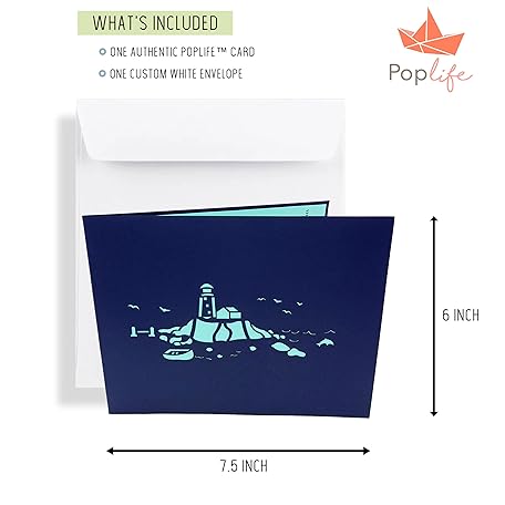 Thông tin sản phẩm PopLife® Lighthouse Island 3D Pop Up Greeting Card for All Occasions - Travellers, Coastal and Adventure Lovers - Folds Flat for Mailing - Birthday, Mother’s Day, Graduation, Retirement, Anniversary