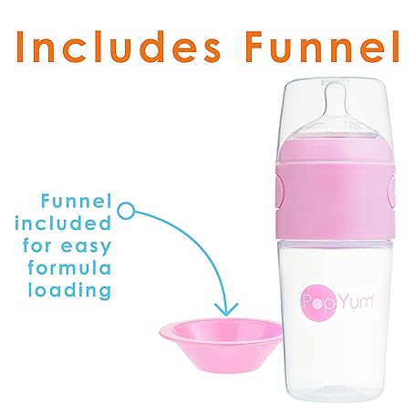 Thông tin sản phẩm PopYum 9 oz Pink Anti-Colic Formula Making/Mixing/Dispenser Baby Bottles, 3-Pack with #2 Medium Flow Nipples, 260 ml, BPA-Free, Natural Latch