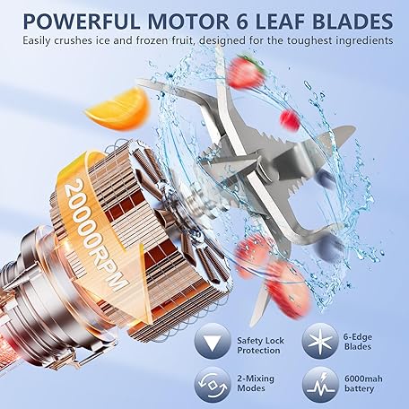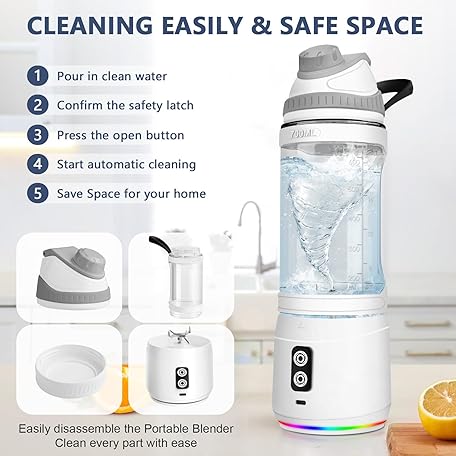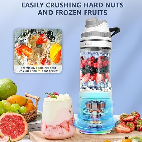 Thông tin sản phẩm Portable Blender, 300W Personal Mini Blender for Shakes and Smoothies, 24oz Compact Travel Blenders with 6000mah USB-C Rechargeable, Intelligent Cleaning Travel Lid & BPA-Free Bottle Gym/Kitchen White