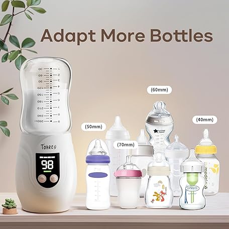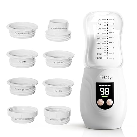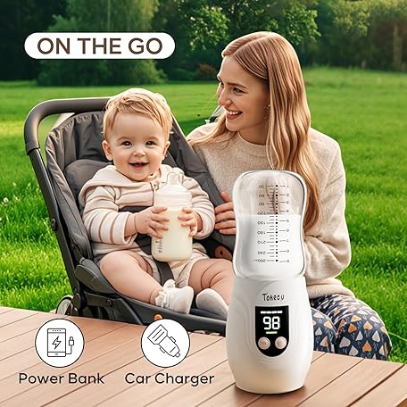 Portable Bottle Warmer for Travel with Glass Bottle, 8 Adapters, Baby Bottle Warmer for Breastmilk On The Go, Double Leak-Proof, Fast Heating, Multi-Level Temperature Control, Automatic Warm-Keeping
