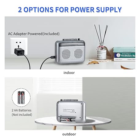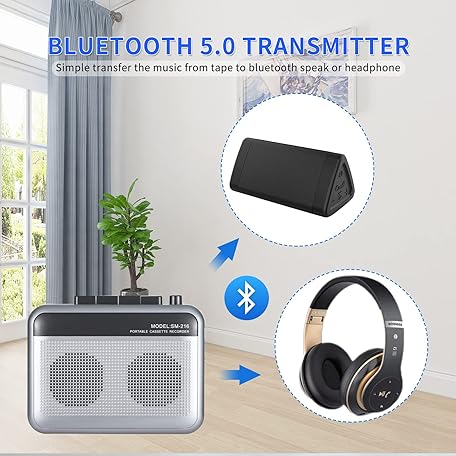 Thông tin sản phẩm Portable Cassette Player Recorder with Bluetooth Transmitter, Walkman Cassette Tape Player with Headphone Jack, Build-in Speaker, Microphone Jack, Powered by AC Adapter or AA Battery