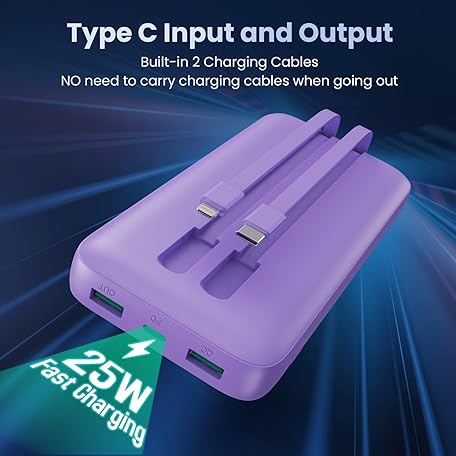 Portable Charger PowerBank 40,800mAh with 2 Built-in Cables,25W PD Fast Charging +QC 4.0 Quick Phone Charging Power Bank, 5 Outputs LCD Display USB C Battery Pack for iPhone 16/15 Android Galaxy etc