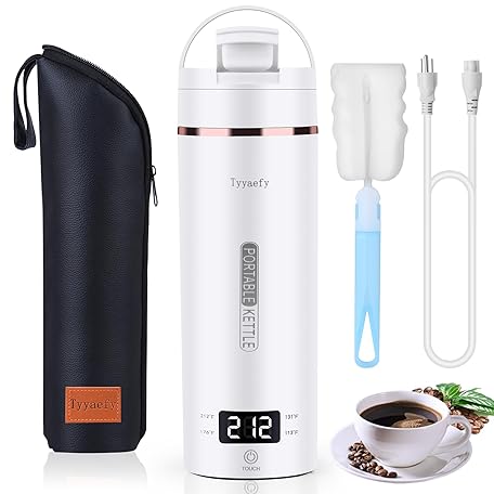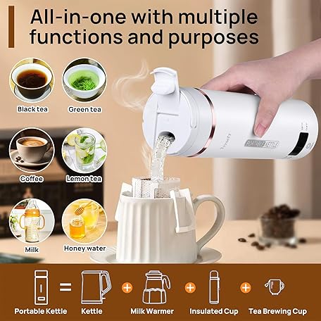 Portable Electric Kettle with Drinking Spout, Plug-in with Travel Bag, 450mL 304 Stainless Steel, 4 Preset Temp, Rapid Boiling – Home/Office/Hotel/Caravan/Dorm/Business Trip