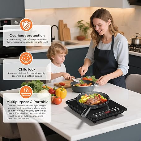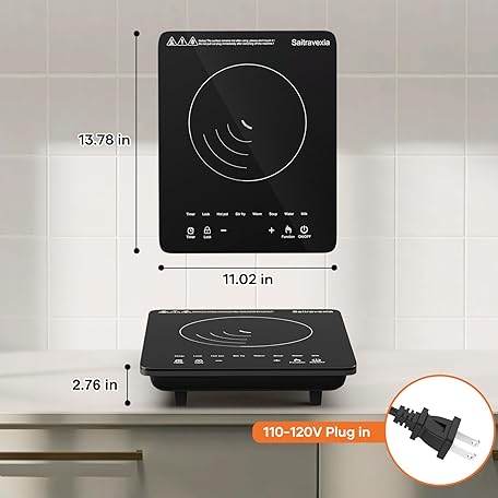 Portable Induction Cooktop, 1200W Induction Burner with 8 Power levels, 110v Outlet Plug with Glass Surface, Safety Lock Timer Countertop Burner