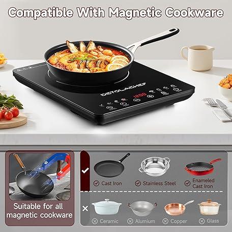 Thông tin sản phẩm Portable Induction Cooktop, 1800W Induction Hot Plate Burner, 10 Temperature Setting, LED Sensor Touch, Kids Safety Lock, Auto-Off & Pan Detection, Electric Cooker with Timer