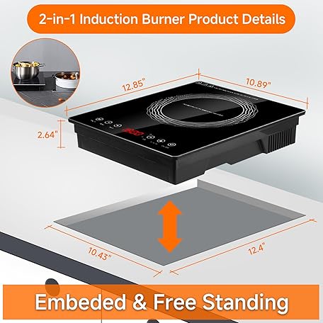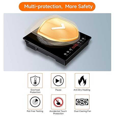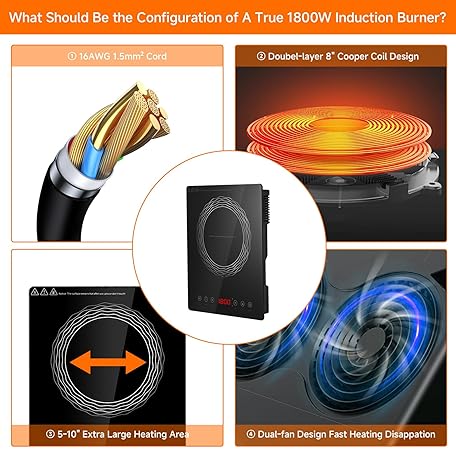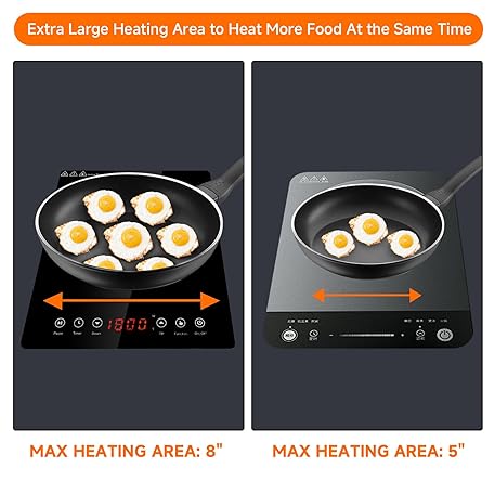 Portable Induction Cooktop Burner, 1800W, Induction Hot Plate with LCD Sensor, Electric Cooktop, Large 8” Heating Coil, 4 Hours Timer