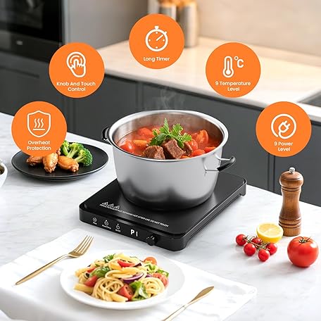 Thông tin sản phẩm Portable Induction Cooktop, Countertop Burner Hot Plate 1500W With Sensor Touch, Electric Induction Cooker With 9-Level Adjustment, 3-Hour Timer, Auto-Shut-Off, LED Display, Auto Pot Detection