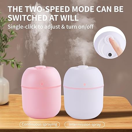 Thông tin sản phẩm Portable Mini Humidifier Small Cool Mist Humidifier Personal Desktop USB Powered Super Quiet for Travel Car,Office,Baby Bedroom, Night Light, 2 Mist Modes, Auto Shut-off