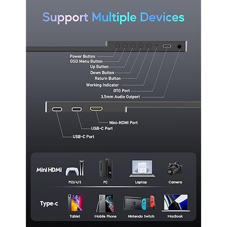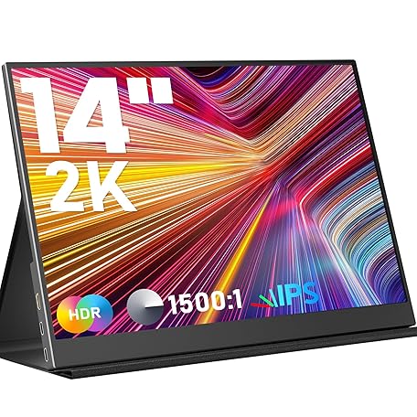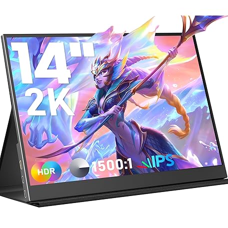 Thông tin sản phẩm Portable Monitor 14inch 2K Laptop Monitor USB C HDMI Gaming Ultra-Slim IPS Display Smart Cover & Speakers, 2160*1440P Screen for Laptop, HDR Plug&Play, External Monitor for Laptop PC Phone Mac Xbox