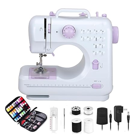 Portable Sewing Machine for Beginners - 12 Built-in Stitches with Accessory Kit, Compact Travel Design for Clothing Repairs, DIY Crafting & Emergency Fixes at Home